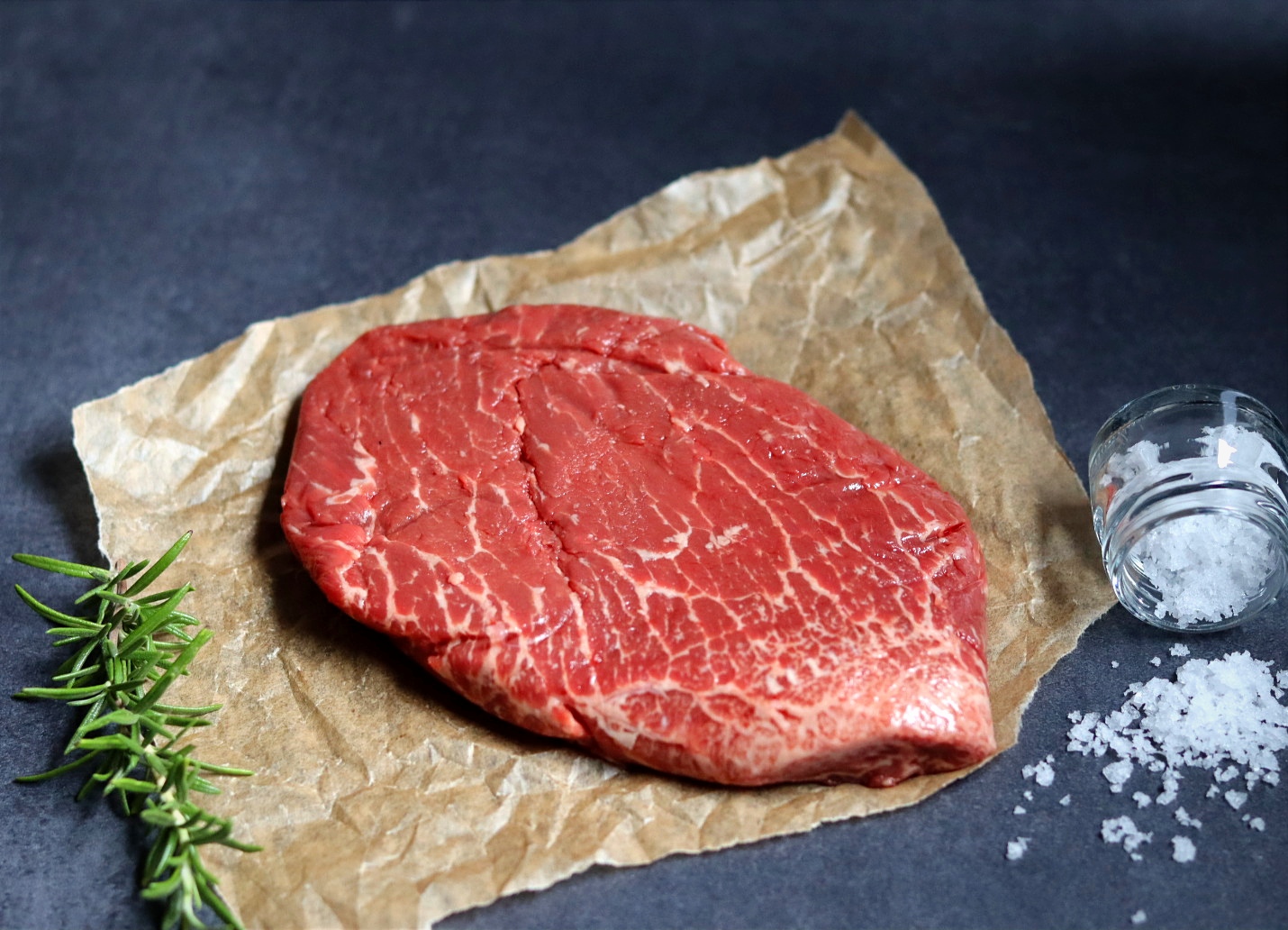 Das Simmentaler Flat Iron Steak stammt aus der Schulter und ist ideal zum Kurzbraten geeignet. Die Marmorierung ist fein und der Geschmack intensiv. Aus dem englischen übersetzt bedeutet Flat Iron „Flaches Eisensteak“.