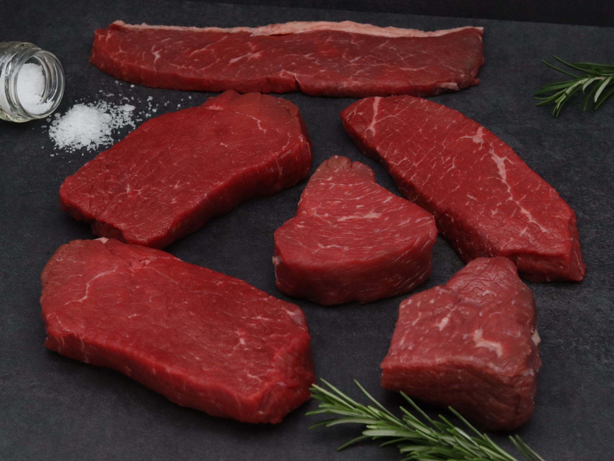 Die Steaks sind jeweils einzeln oder als zweier Steaks zwischen 200g -600g vakuumiert verpackt.