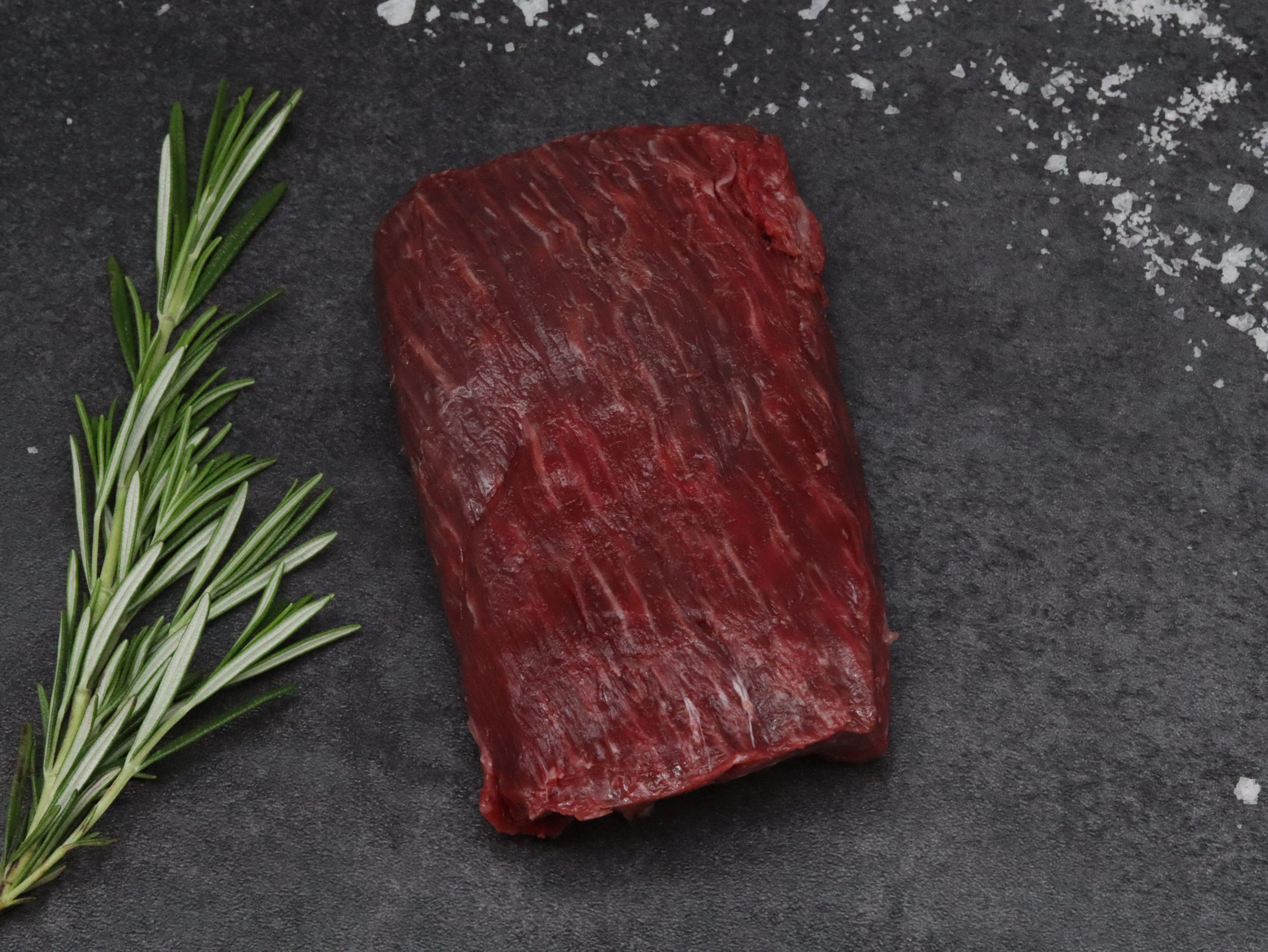 Das Wagyu Flap Meat stammt aus dem Bauchmuskel unterhalb des Brustkorbs. Es ist grobfaserig und stark marmoriert.